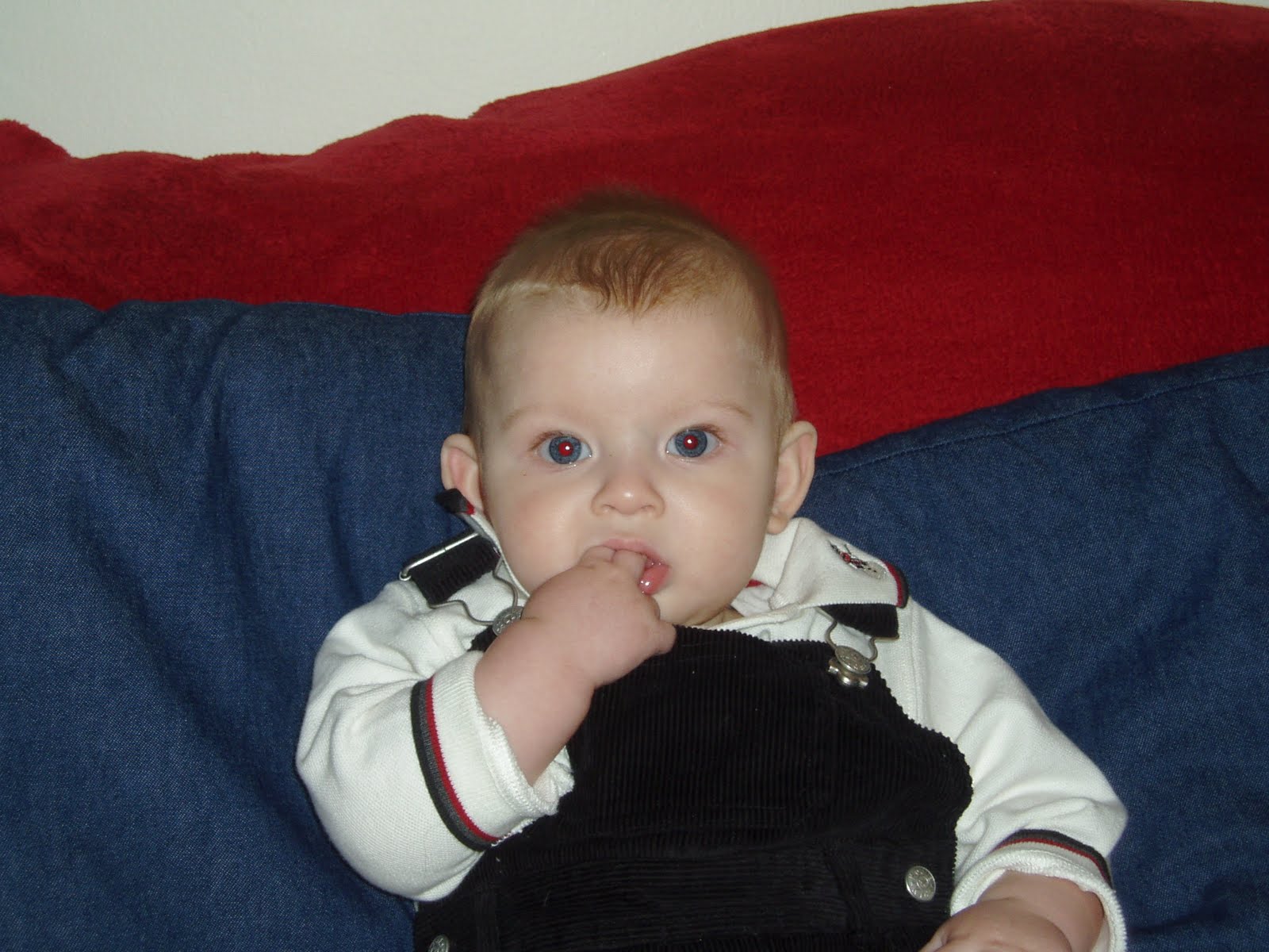 Samuel used to have a sock fetish:) He went through a phase when he was around 6 months or so where he loved to suck on his socks!
